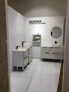 Impression et pose sur mur et sol Habillage événementiel pour leroy merlin 2019 Matériaux utilisés : Vynil de découpe, Adhésif Velleda blanc et noir Mat, Impressions numériques HD, Blanc Mat opaque